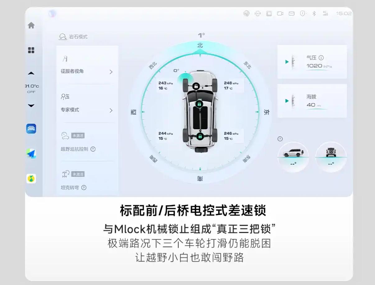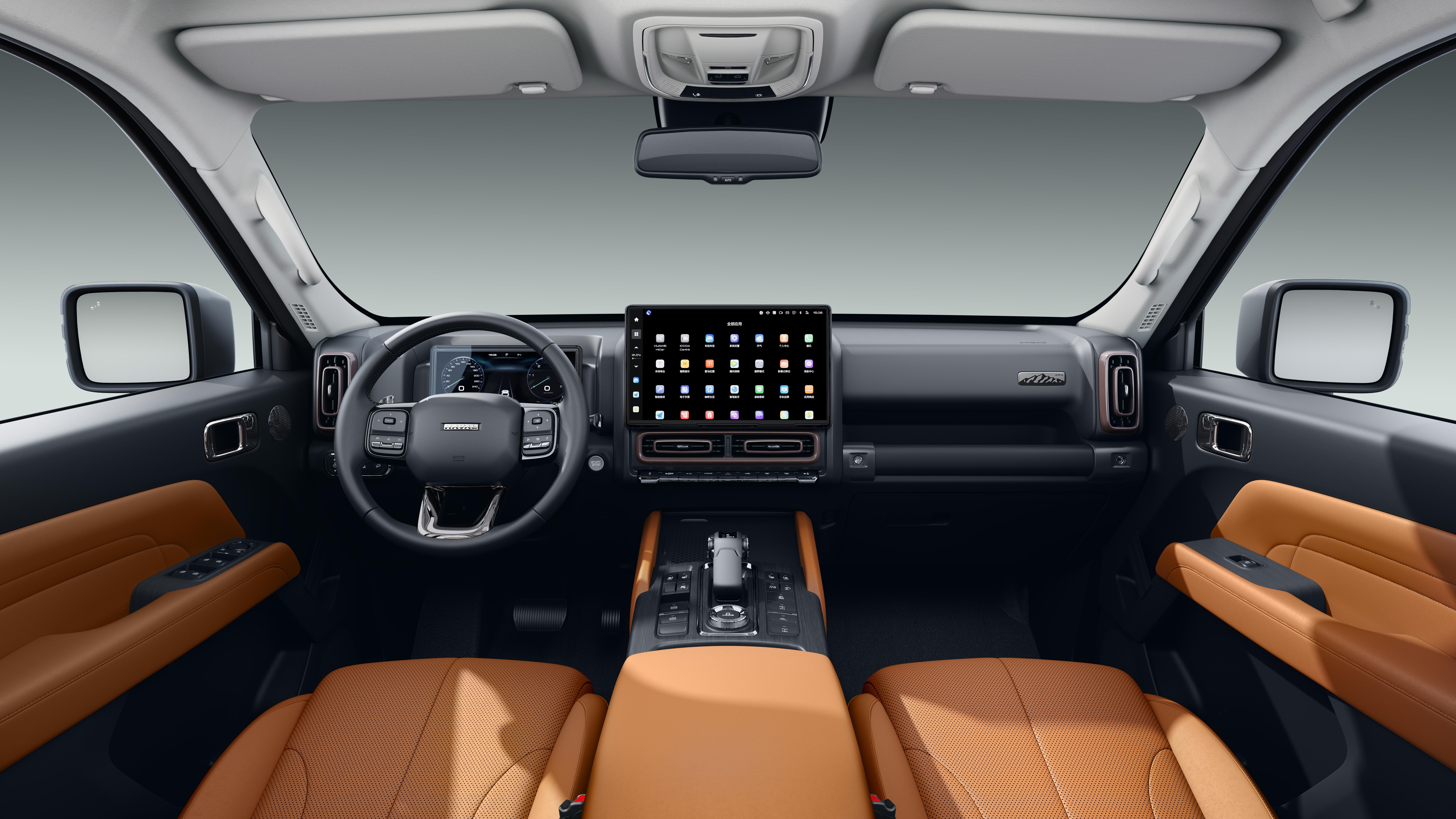 内饰方面,该车继续了现金车型设想,举座造型耿介爽直,姿色显露数据全面切明晰。针对双油箱,姿色盘下部还有益设想有双油量表,方便驾驶员不雅察。而14.6英寸的中控屏搭载了最新的咖啡os车机系统,使用方便指点。中央档把区域两侧配有大宗的物理按键,方便对四驱系统等功能进行准确快速的操作。